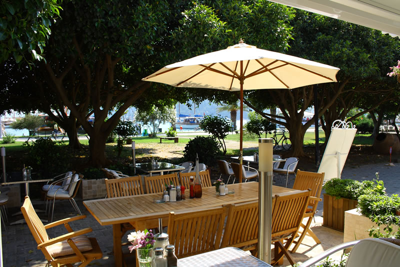 West Cafe & Bistro has one of the best spot located between Skopea and Gocek Marina. Cafe has seafront on one side and main shopping street on the other side which makes it very convenient for travellers, boat owners or families with kids to have a stop over for some drinks and snacks.